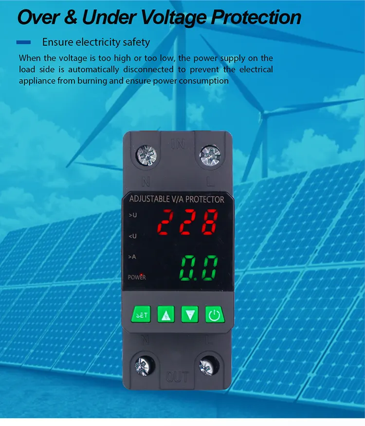 Equipped cum digital ostentationem et artificialia cum importari modularis electronic components, quod habet altum reliability et perficientur. Protector automatice et cito secat potentiam copiam in abnormes voltages (ut overvoltage, undervatio, aut eget fluctuations) et restituit potentia copia post voltage redit ad normalem.